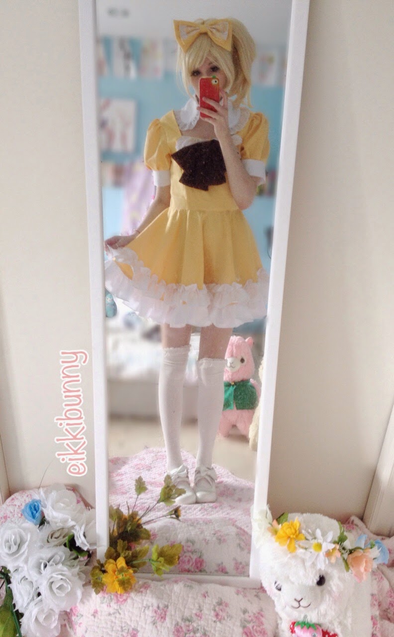 I'm wearing my Benio/Kisshou wig for these photos~! And my yellow lenses from Uniqso! Annnnd of course, dress and alpaca from Showishes!